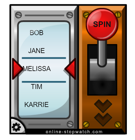 Try the One Arm Bandit name spinner on the Online Stopwatch website - you can also use this tool to generate a random number.