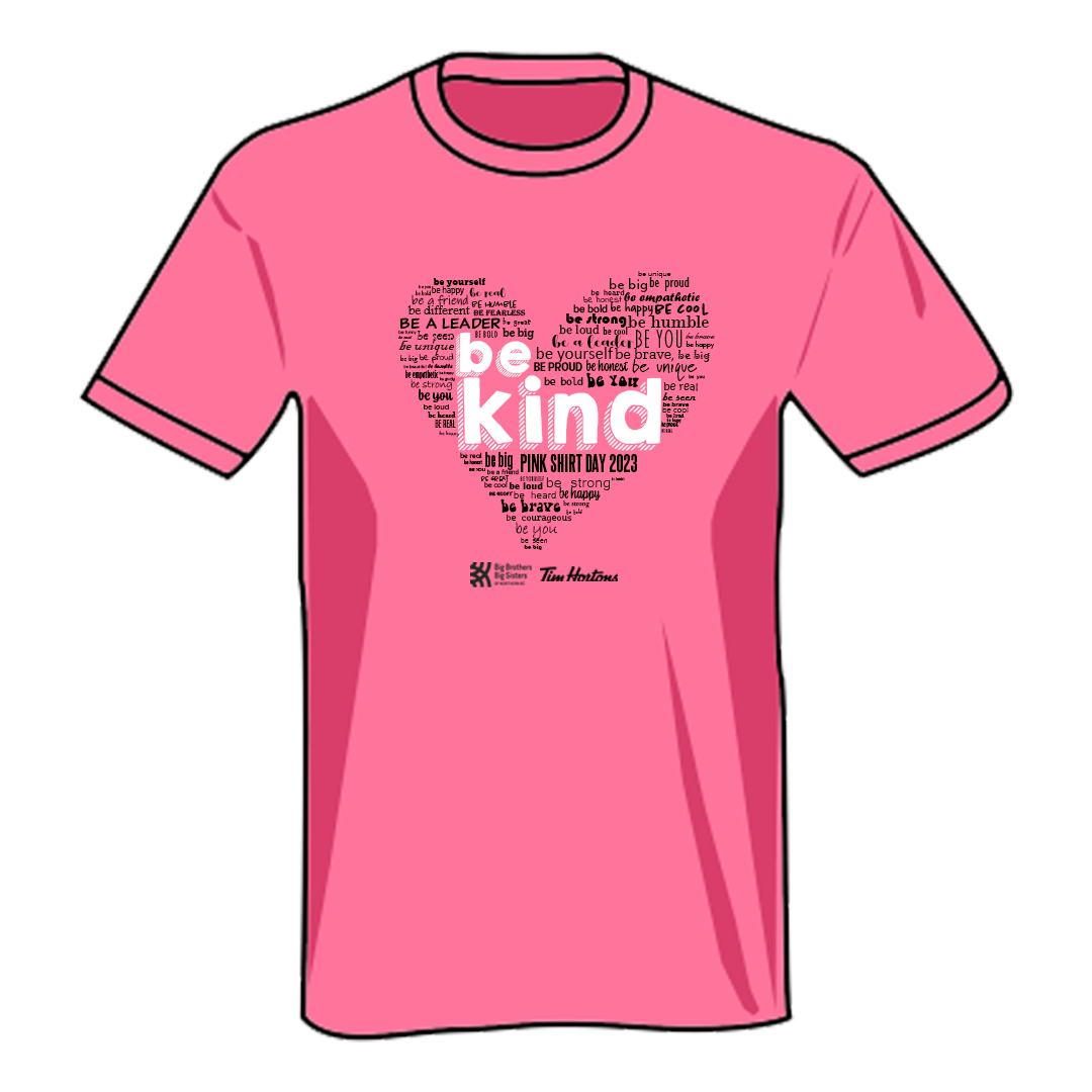 Pink shirts are available in sizes youth xs - adult xxxl. Shades of pink may vary depending on supply at time of order.